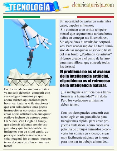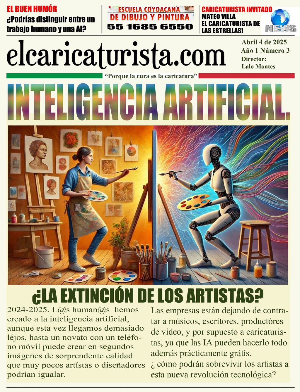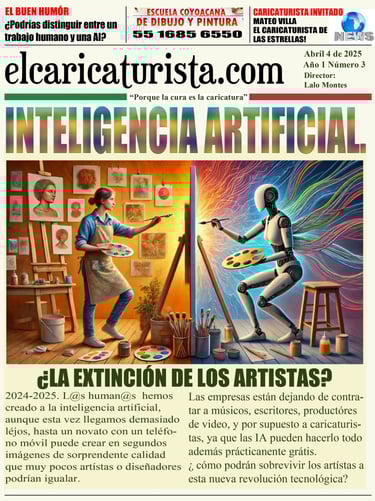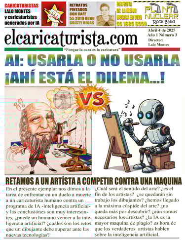 Con gran entusiasmo, presentamos la edición de marzo de 2025 de El Caricaturista, el periódico que celebra la creatividad de los artistas de la caricatura. En esta ocasión, hemos decidido hacer un experimento audaz: desafiar a un destacado caricaturista a competir en un duelo artístico contra la inteligencia artificial. Los resultados fueron sorprendentes y estimulantes, lo que nos lleva a reflexionar sobre el impacto de la tecnología en el arte.